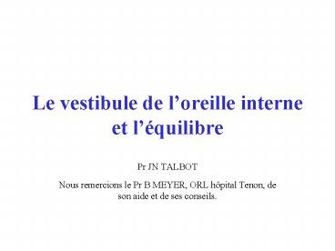 Title: Le vestibule de loreille interne et lquilibre