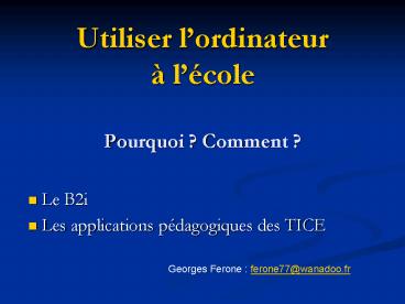 Title: Utiliser lordinateur lcole Pourquoi Comment