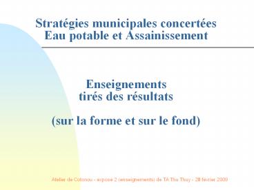 1Stratégies municipales concertées Eau potable et