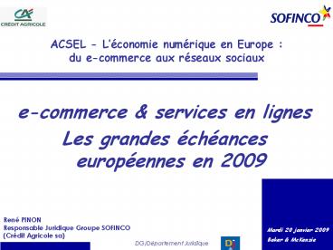19LES GRANDES ECHEANCES EUROPEENNES EN 2009