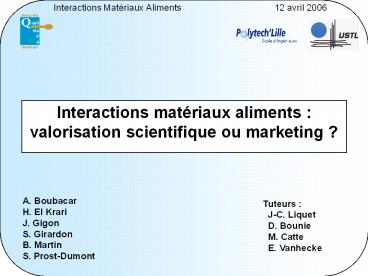 Les emballages actifs. Focus. Le bois. Les emballages actifs. La compote ... Les emballages actifs. La compote. Viandes r frig r es Limiter l'oxydation Bouchon ... – PowerPoint PPT presentation