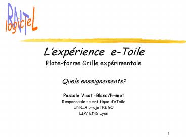 intergiciel e-Toile - Intégration et déploiement de la plate-forme 2