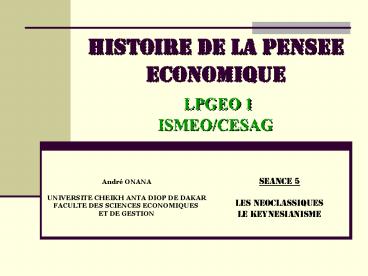 Title: HISTOIRE DE LA PENSEE ECONOMIQUE LPGEO 1 ISMEO/CESAG