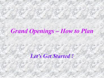<Notice: Removed> Grand Openings PowerPoint PPT Presentation