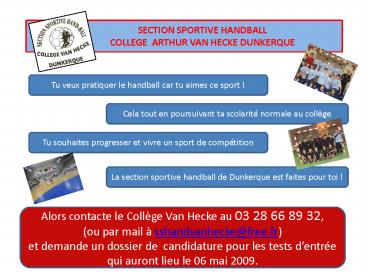 SECTION SPORTIVE HANDBALL COLLEGE ARTHUR VAN