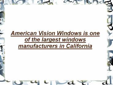 1American Vision Windows is one of the largest