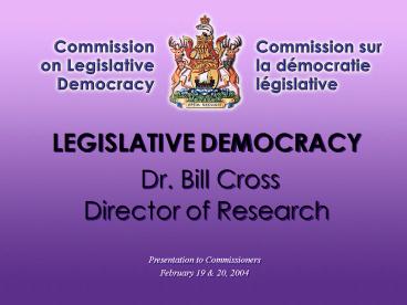 1LEGISLATIVE DEMOCRACY Dr. Bill CrossDirector