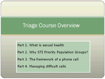 1Triage Course Overview