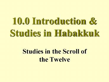 10.0 Introduction Studies in Habakkuk
