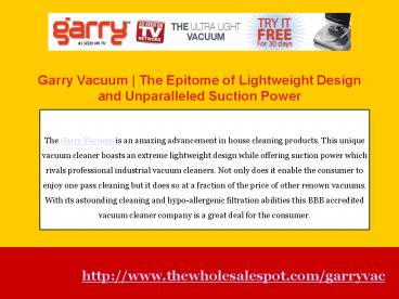 Title: Garry Vacuum Redefining Vacuum Cleaner Technology