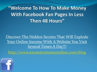 1Welcome To How To Make Money With Facebook Fan