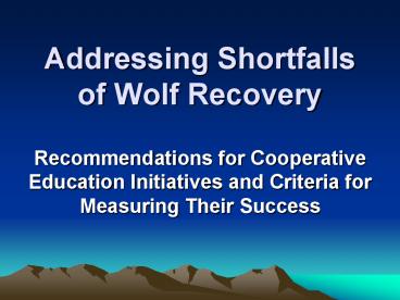 <Notice: Removed> Addressing Shortfalls of Wolf Recovery PowerPoint PPT Presentation