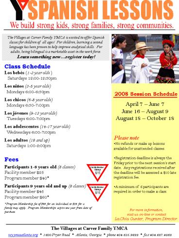 vcy.ymcaatlanta.org 1600 Pryor Road