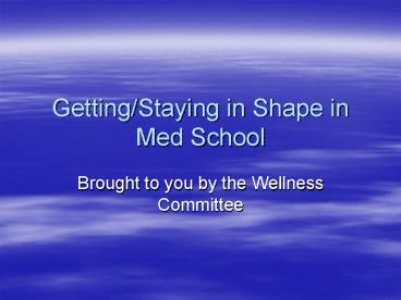 GettingStaying in Shape in Med School PowerPoint PPT Presentation