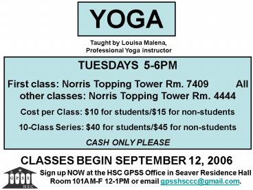 CLASSES BEGIN SEPTEMBER 12, 2006