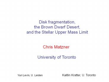 1Disk fragmentation, the Brown Dwarf Desert, and