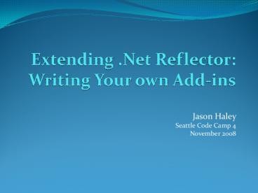 Extending .Net Reflector: Writing Your own Addins PowerPoint PPT Presentation