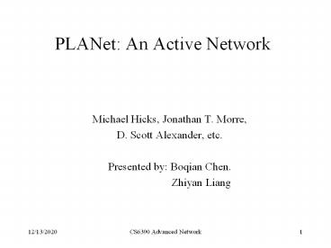 <Notice: Removed> PLANet: An Active Network PowerPoint PPT Presentation