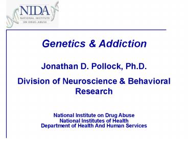 1 Genetics Addiction Jonathan D. Pollock, Ph.D.