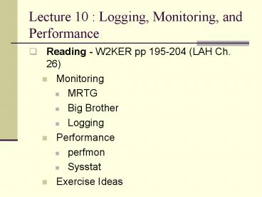 <Notice: Removed> Lecture 10 : Logging, Monitoring, and Performance PowerPoint PPT Presentation