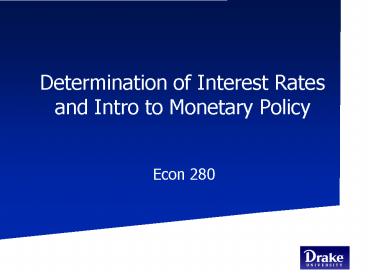 Title: Determination of Interest Rates and Intro to Monetary Policy