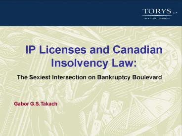IP Licenses and Canadian Insolvency Law: PowerPoint PPT Presentation