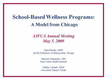 Title: SchoolBased Wellness Programs: A Model from Chicago