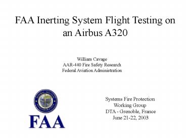 Tank (CWT) - FAA Onboard Oxygen Analysis System (OBOAS)
