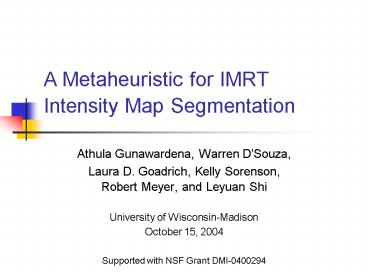 Title: A Metaheuristic for IMRT Intensity Map Segmentation