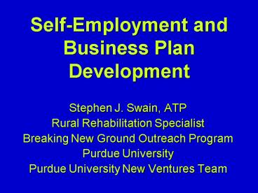 Title: SelfEmployment and Business Plan Development
