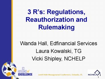 <Notice: Removed> 3 Rs: Regulations, Reauthorization and Rulemaking PowerPoint PPT Presentation