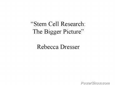they must be derived from embryos. - Dresser To derive stem cells, scientists must
