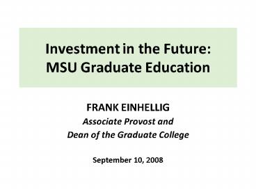 1Investment in the Future MSU Graduate Education