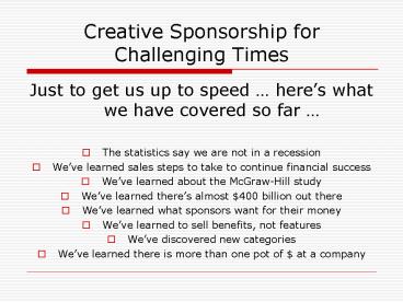 product, area sponsorships - Then, start selling (renewals first, then new)