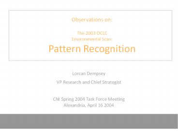 Title: Observations on: The 2003 OCLC Environmental Scan: Pattern Recognition
