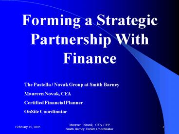 Title: Forming a Strategic Partnership With Finance