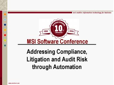 Title: Addressing Compliance, Litigation and Audit Risk through Automation