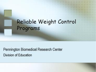 <Notice: Removed> Reliable Weight Control Programs PowerPoint PPT Presentation