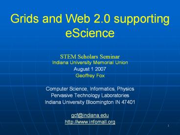<Notice: Removed> Grids and Web 2.0 supporting eScience PowerPoint PPT Presentation