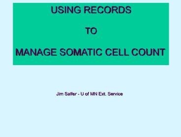 1USING RECORDS TO MANAGE SOMATIC CELL COUNT