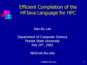<Notice: Removed> Efficient Compilation of the HPJava Language for HPC PowerPoint PPT Presentation