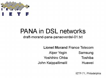 PANA in DSL networks draft-morand-pana-panaoverdsl-01.txt PowerPoint PPT Presentation
