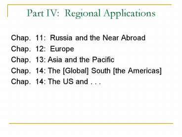 <Notice: Removed> Part IV: Regional Applications PowerPoint PPT Presentation