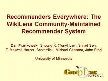 Title: Recommenders Everywhere: The WikiLens CommunityMaintained Recommender System