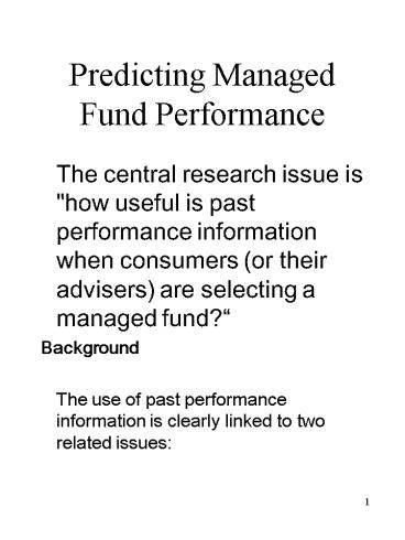 1Predicting Managed Fund Performance