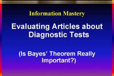 - Evaluating Articles about Diagnostic Tests