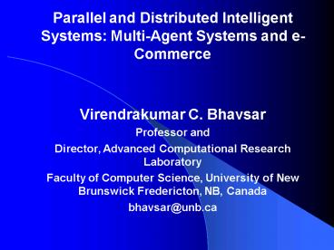 Multi-Agent Systems and e-Commerce - Virendrakumar C. Bhavsar