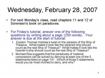 <Notice: Removed> Wednesday, February 28, 2007 PowerPoint PPT Presentation