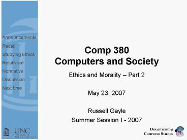 Comp 380 Computers and Society PowerPoint PPT Presentation