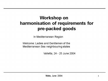 1Workshop on harmonisation of requirements for